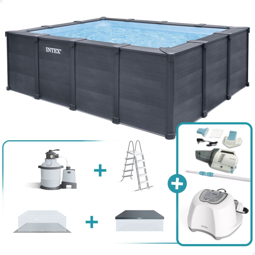 Pack Piscina desmontable rectangular Graphite Gray Panel 4 metros 6 accesorios